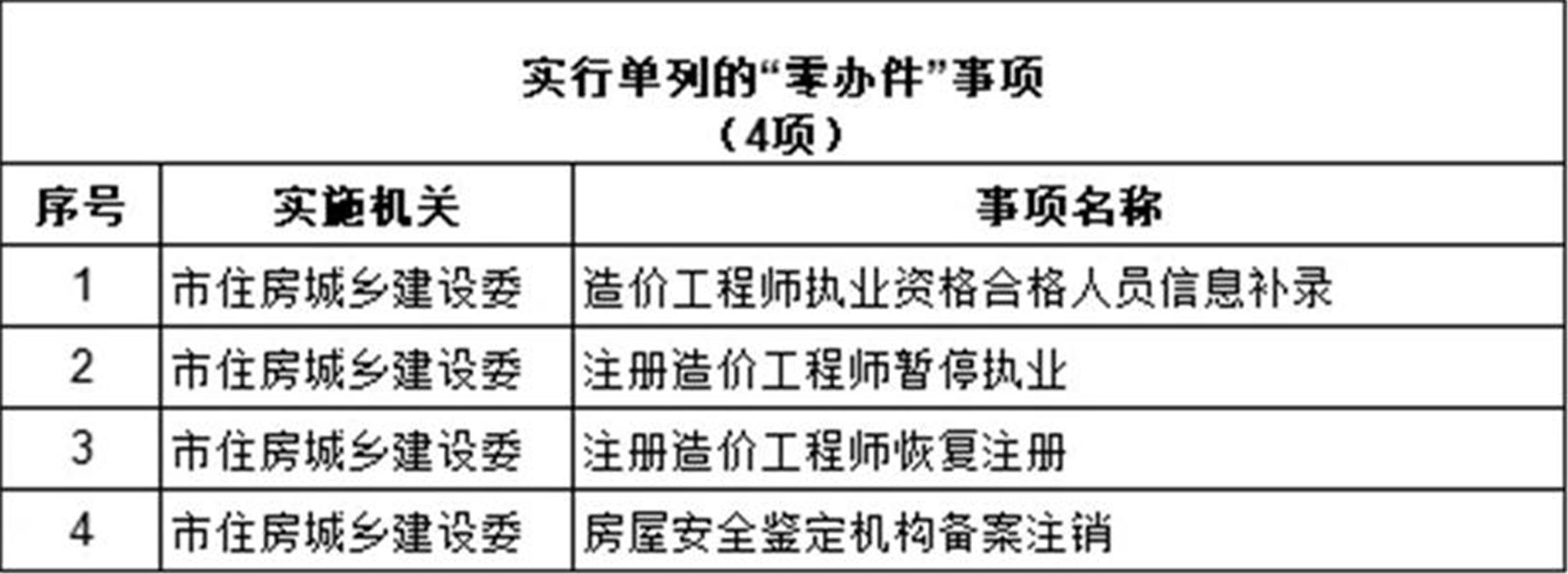 二、对4项“零办件”事项实行单列。对“零办件”事项采取暂停管理措施,如出现相对人申请的情况,可启动恢复程序及时予以办理。